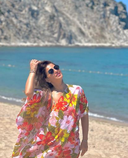 تنجذب دائمًا منة فضالي للألوان المبهجة والصارخة خصوصًا عند استجمامها بعطلتها الصيفية وفي المدن الساحلية.
