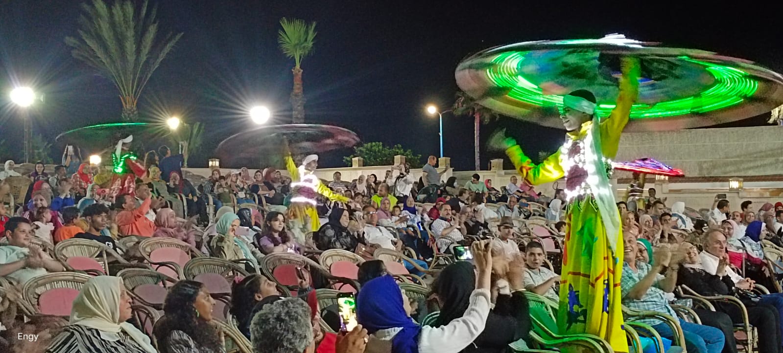 وتفاعل جمهور المسرح مع روائع استعراضات الفن الشعبى ، التى تقدمها "الفرقة القومية للفنون" بقيادة الفنان القدير هاني النابلسي ،  ومن المقرر أن تستمر الفرقة فى تقديم حفلاتها حتى ١٣ اغسطس المقبل.