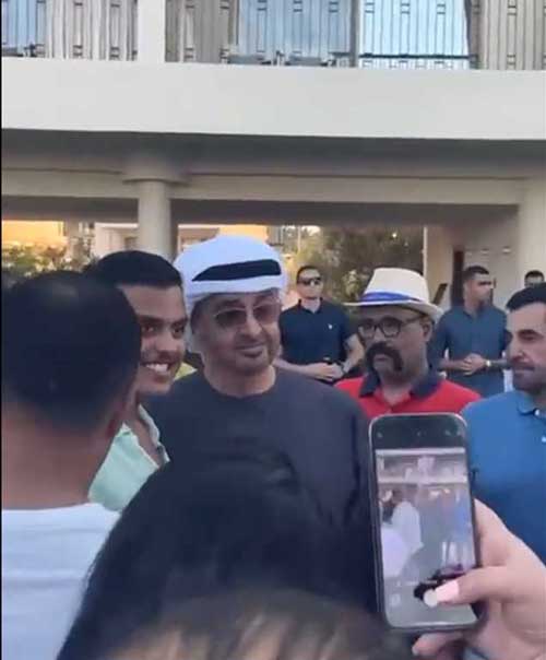 تداول نشطاء عبر منصة تويتر، مقطع فيديو وصورًا للرئيس الإماراتي الشيخ محمد بن زايد آل نهيان، وهو يتجول في مدينة العلمين الجديدة.
