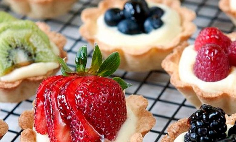 وزعي الكاسترد في عجينة الميني تارت ثم وزعي الفواكة على الوجه.