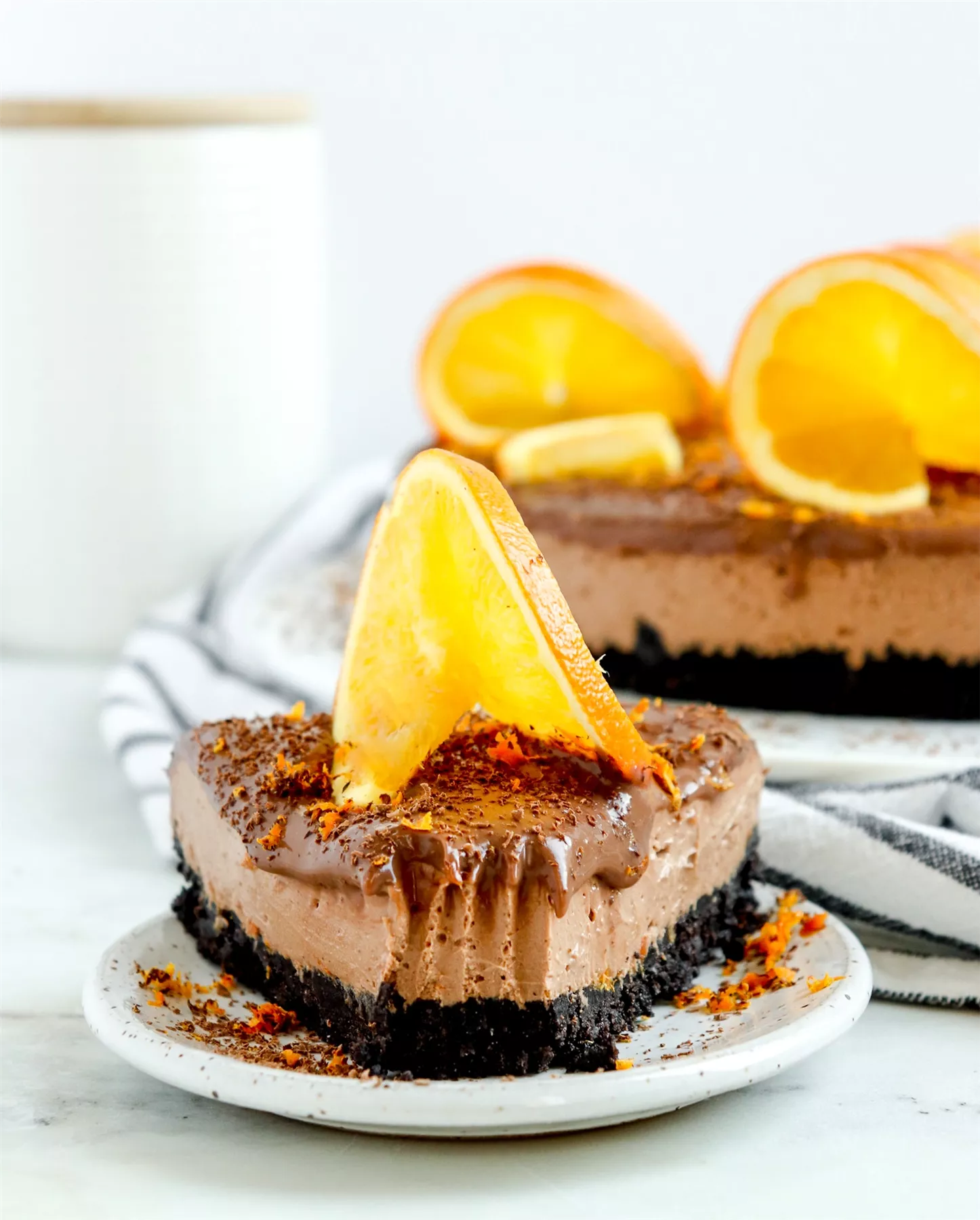 تعد تشيز كيك الشوكولاتة بالبرتقال من أطيب وألذ وصفات الحلويات الغربية، لذلك نقدم لكم طريقة تحضيرها بطعم الشوكولاتة الغنية والبرتقال المنعش.