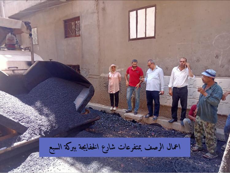 فيما تابع رئيس الوحدة المحلية لمركز ومدينة بركة السبع أعمال رصف و تركيب بلاط الانترلوك بمتفرعات شارع الخفايجه بنطاق المدينة ، حيث تم الإنتهاء من أعمال الرصف المتكاملة من قطع الفرمة وفرد طبقة السن وتركيب البلدورات والأرصفة الجانبية ورفع مطابق الصرف الصحي وبلاعات الأمطار بالشارع لتحقيق السيولة المرورية اللازمة أمام المواطنين وإضفاء المظهر الحضارى والجمالى.
