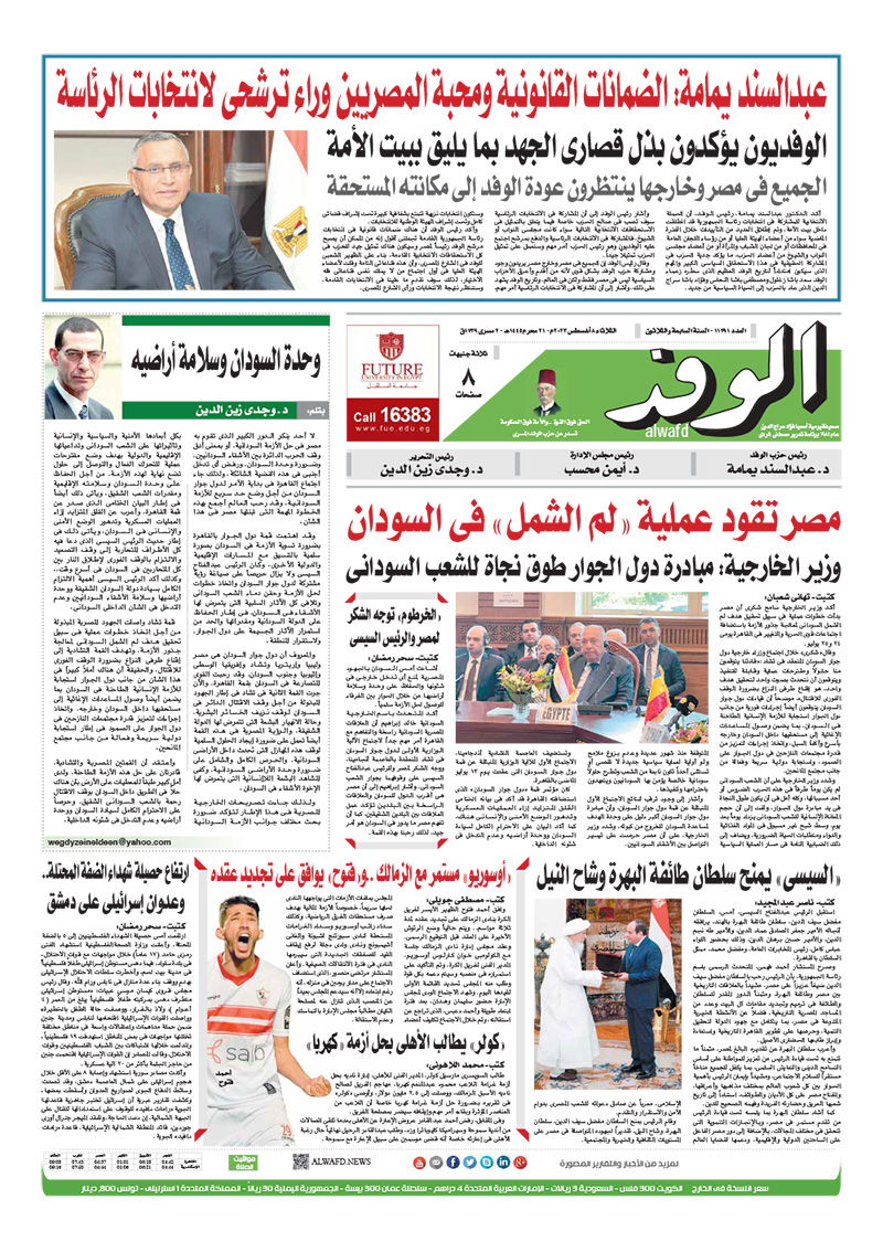 تنشر جريدة الوفد في عددها الصادر، غدًا الثلاثاء، العديد من الموضوعات والتقارير الإخبارية المهمة، أبرزها: "عبدالسند يمامة: الجميع في مصر وخارجها ينتظرون عودة الوفد إلى المكانة المستحقة".