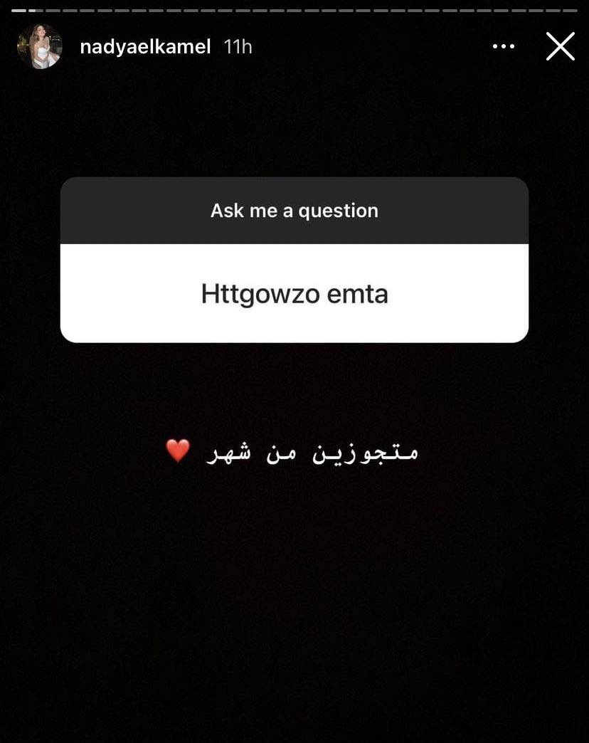 أعلنت ندى الكامل أنها قد تزوجت منذ شهر، وليست مجرد خطوبة فقط كما توقع البعض بعد إعلان ارتباطها، وجاء ذلك خلال ردها على رسائل المتابعين والتي تضمنت: "هتتجوزوا امتى؟"، "مبروك على الخطوبة"، لترد قائلة: "متجوزين من شهر .. دي مش خطوبة ده جواز الله يبارك فيك".