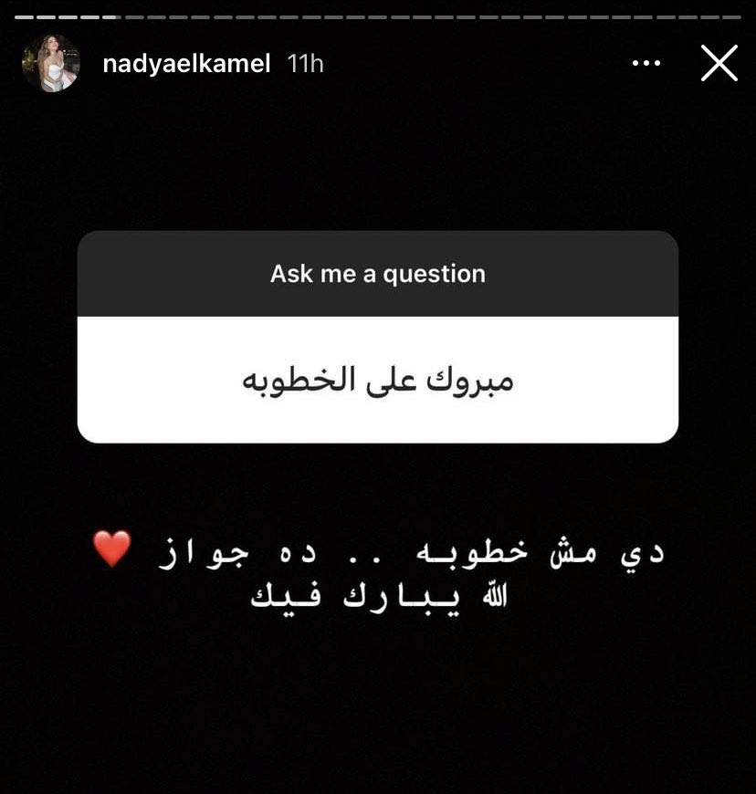 وكانت ندى الكامل قد أعلنت ارتباطها منذ أسبوع، حيث قامت بنشر مجموعة صور رومانسية تجمعها بشخص يُدعى أحمد وهي تقبله وتحضتنه، وأرفقتها بتعليق: "اخترت أن أكون سعيدة"، وذلك عبر حسابها الشخصي بموقع تبادل الصور والفيديوهات "انستجرام".