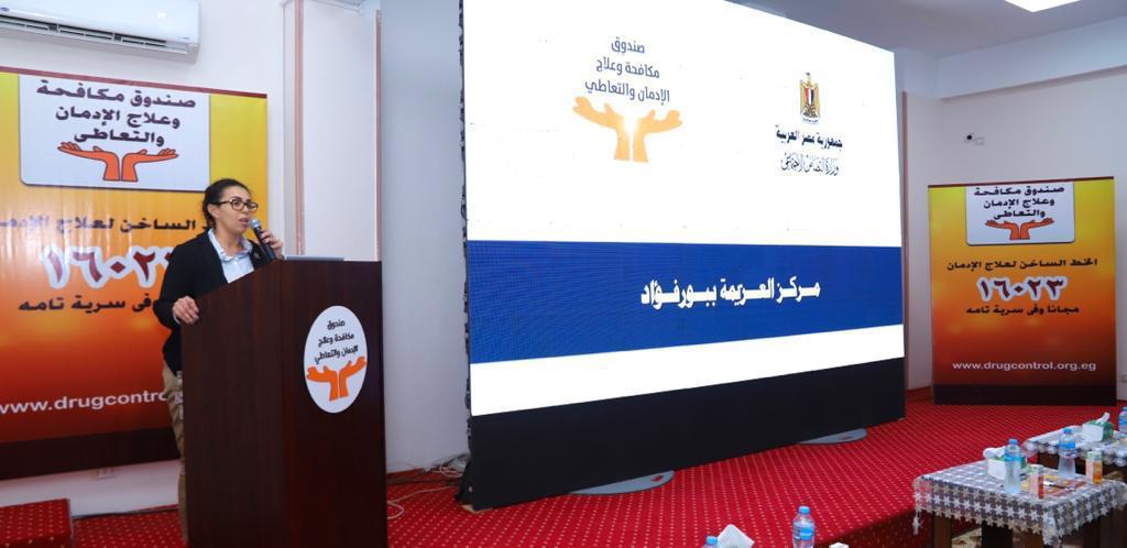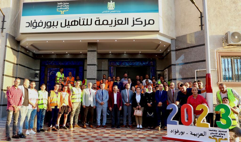وكان في استقبالهم الدكتور عمرو عثمان مساعد وزير التضامن الاجتماعي ومدير صندوق مكافحة وعلاج الإدمان والتعاطي، حيث كان المركز أصل غير مستغل بمساحة 4500م وتم تخصيص المبنى لصندوق مكافحة وعلاج الإدمان لإعادة تشغيله وتحويله لمركز تأهيلي لمرضى الإدمان وفق قرار اللجنة الوزارية لحصر الأصول غير المستغلة.