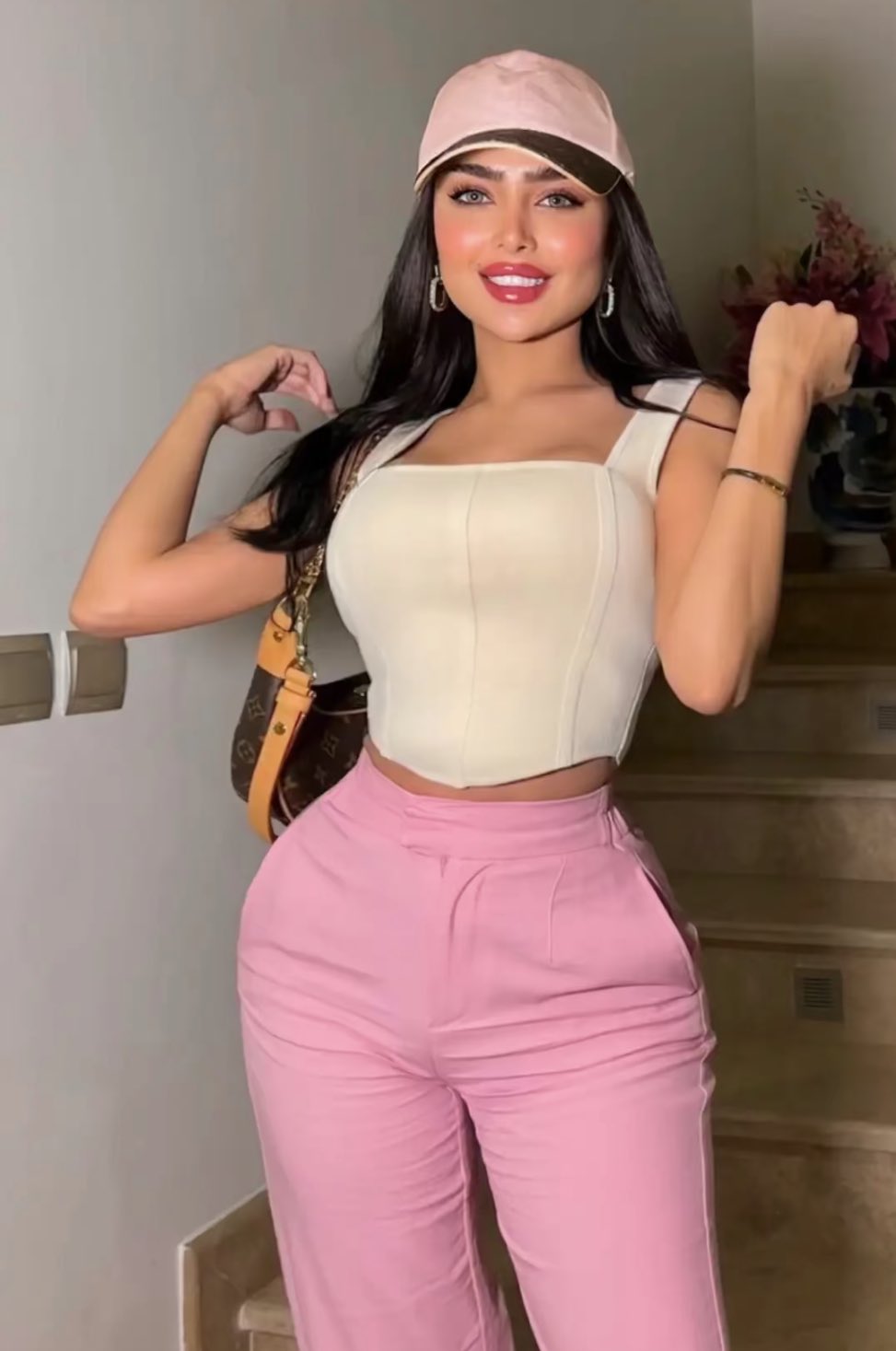 تألقت روان بن حسين الفاشينيستا الكويتية بإطلالة كلاسيكية جذابة عبارة عن سروال جينز باللون الأزرق، مع توب أبيض قصير،بليزر باللون الوردي بتصميم مريح و حقيبة وردية براقة.