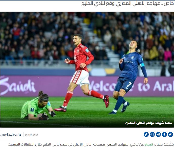 كشفت تقارير سعودية عن اقتراب محمد شريف نجم النادي الأهلي من الانتقال لصفوف فريق الخليج السعودي خلال فترة الانتقالات الصيفية الجارية.