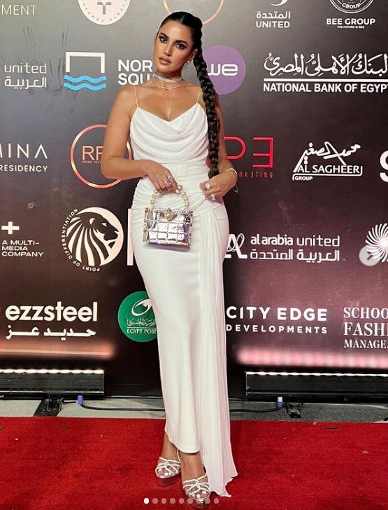 أما من الناحية الجمالية، اعتمدت أحدث تسريحات الشعر الضفيرة الطويلة عكست جمالها ووضعت مكياجًا ناعمًا مرتكزًا على الألوان الترابية مع تحديد عينيها بالكحل والماسكرا السوداء ولون النود في الشفاه.