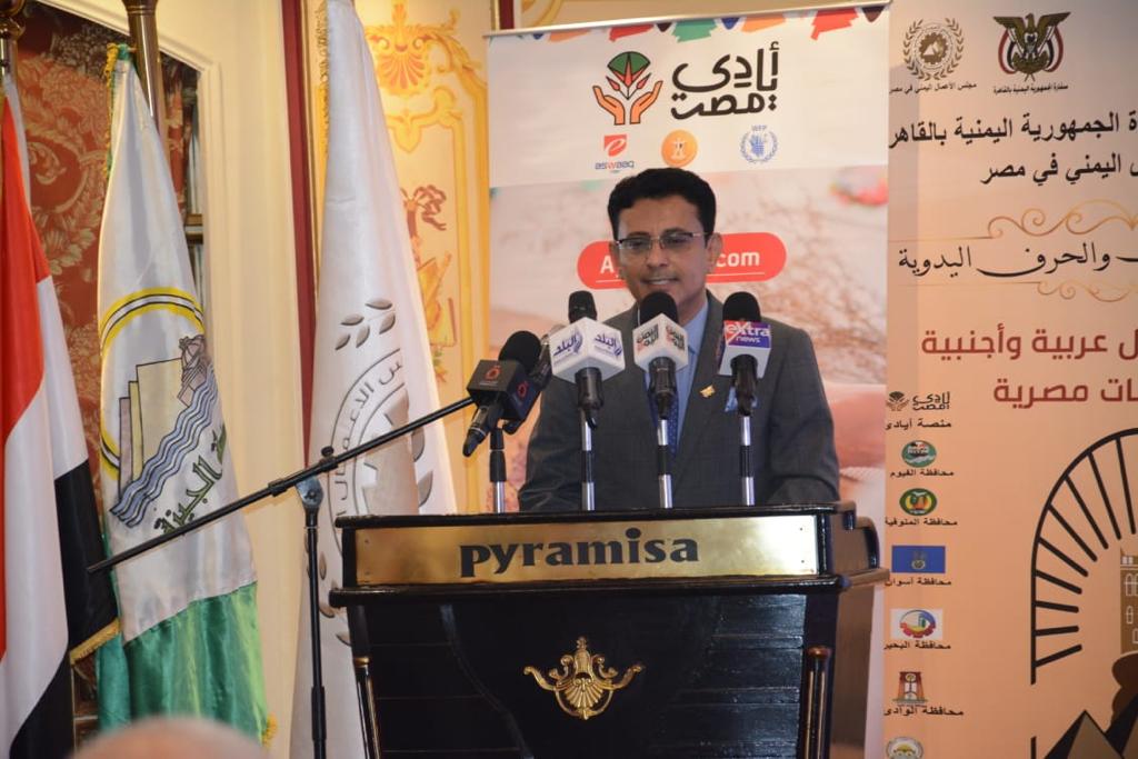 و من جانبه رحب اللواء أحمد راشد محافظ الجيزة بجميع الحاضرين موجهاً الشكر لهم للمشاركة ومؤكداً على حرص دولة اليمن الشقيقة ممثلةً فى سفارة اليمن ومجلس الأعمال اليمنى والذين لا يدخرون جهداً للتعاون والمشاركة بكافة الفاعليات والمحافل التى تدعم رغبتهم الدائمة للتعبير عن محبتهم الصادقة لمصر وشعبها، إلى جانب الجهد المبذول من قبل منصة أيادى مصر لدعم التنمية والتطوير بمختلف أنحاء المحافظة.
