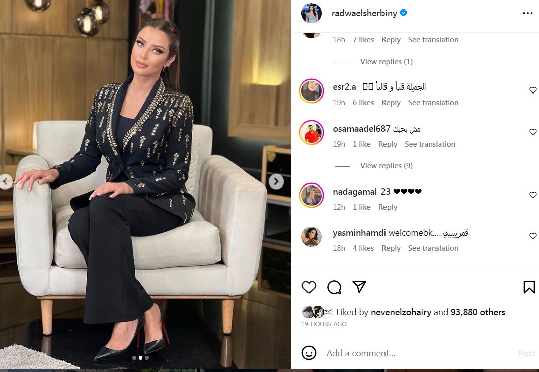 وانهالت التعليقات على صور رضوى الشربيني وجاءت التعليقات بين مؤيد ومعارض أبرزها: " مش بحبك".