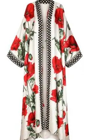 وأكملت إطلالتها بارتداء كيمونو طويل من الستان مع نفس رسومات الورود الحمراء، سعره 8.530 دولار أي 264 ألف جنيه.