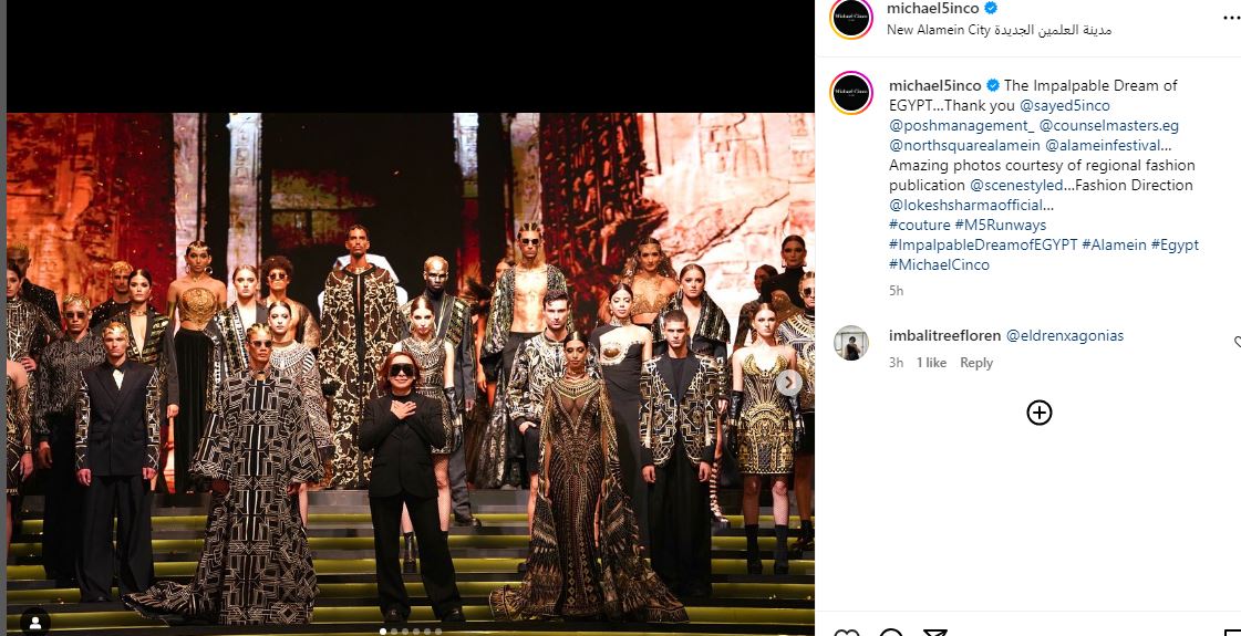 نظم المصمم الفيليبيني العالمي مايكل سينكو عرضه الأول في مجمع North Square Mall بمصر، ضمن فعاليات مهرجان العلمين، الذي مزج بين الحضارة الفرعونية العريقة والفن بلمسة فاخرة.