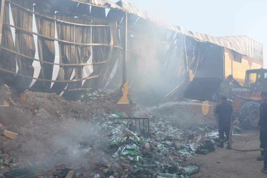 6 سيارات إطفاء للسيطرة على حريق مخزن مواد غذائية بالخانكة| صور