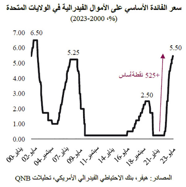 ويرى تحليل اقتصادى لمجموعة قطر الوطنى الأهلى أنه على الرغم من التقدم السريع فى خفض التضخم خلال الأشهر القليلة الماضية، ونعتقد أن بنك الاحتياطى الفيدرالى سوف يميل إلى «التشديد» وسط حالة من عدم اليقين، وربما يرفع أسعار الفائدة أكثر هذا العام.