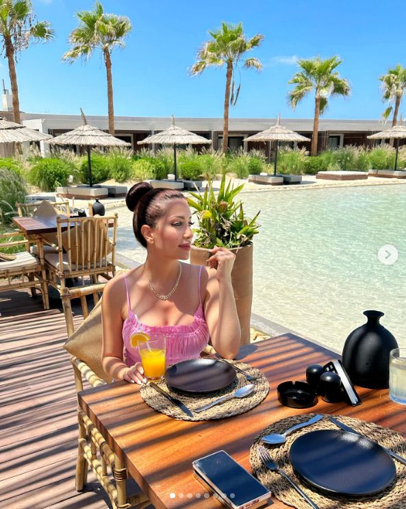 تستمتع الفنانة السورية نسرين طافش بأجواء الصيف في أحد الفنادق بالساحل الشمالي، وتشارك متابعيها ببعض اللقطات عبر حسابها الشخصي بموقع تبادل الصور والفيديوهات إنستجرام، مستعرضة أنوثتها بلوك صيفي جذاب.
