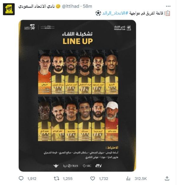 تشكيل الرائد لمباراة الاتحاد السعودي