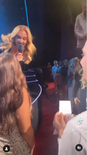 وسرعان ما دخلت أديل في نوبة من البكاء الهستيري، لمشاركتهم تلك اللحظة السعيدة، و عانقت الزوجين لورد ودير وقدمت لهما الأمنيات الطيبة، وقالت وهي تبكي وتعتذر للجمهورعن بكائها: "كان ذلك مذهلاً.. أنا سعيدة جدًا من أجلكما.. أنا سعيدة جدًّا من أجلكما.. هذا عاطفي جدًا، يا إلهي".