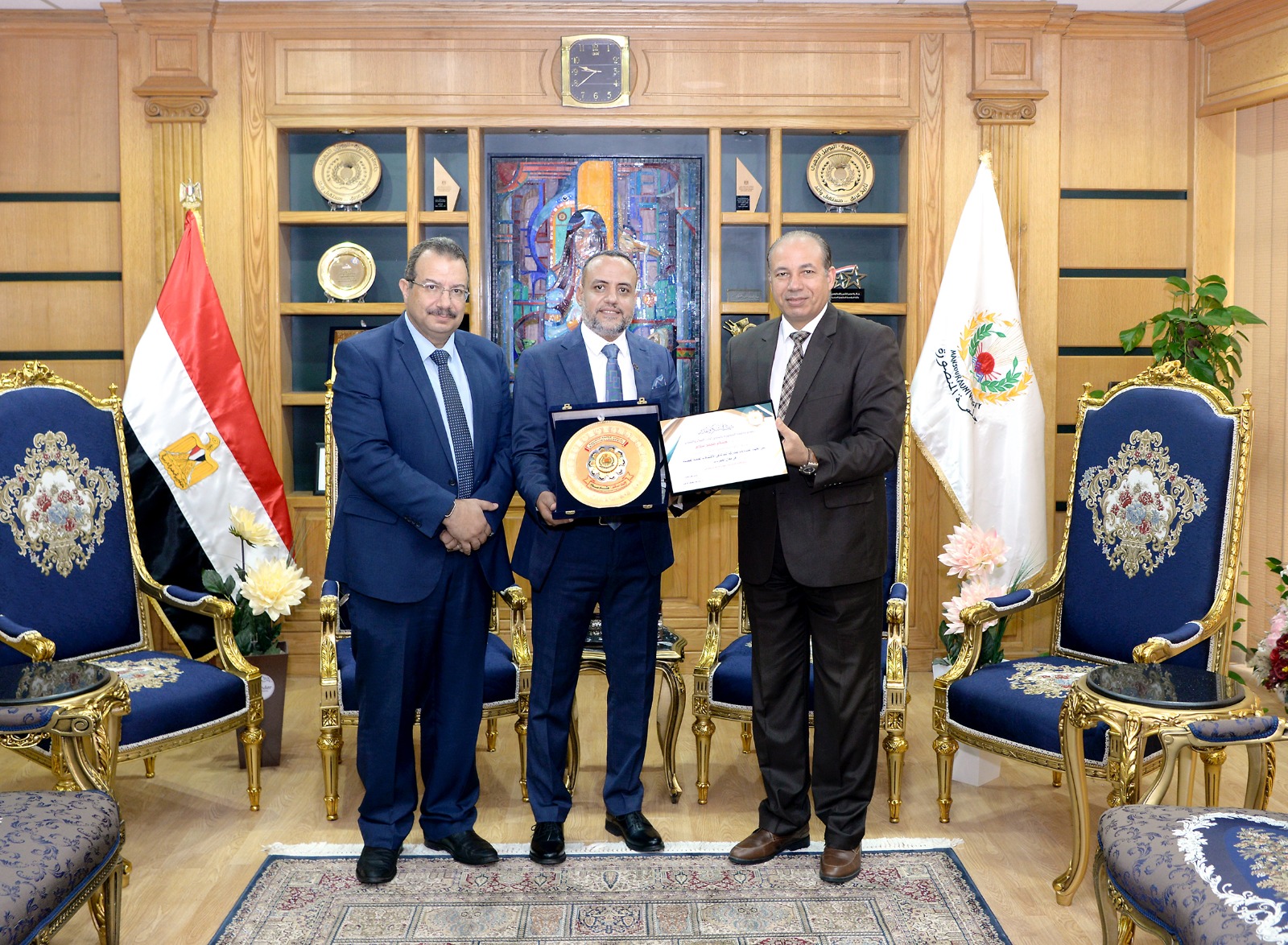 كرم الدكتور شريف خاطر- رئيس جامعة المنصورة، اليوم الأربعاء، الفريق البحثى بمركز جامعة المنصورة للحفريات الفقارية بكلية العلوم، بحضور الدكتور أسامة العيان عميد كلية العلوم، الدكتورهشام محمد سلام مؤسس مركز جامعة المنصورة للحفريات الفقارية، لدكتورة هبة الدسوقي مدير مركز