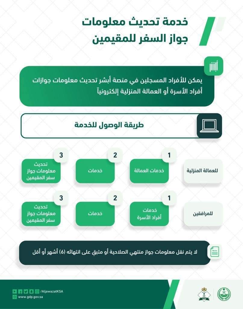 نوهت المملكة العربية السعودية، المقيمين بها والوافدين عن طريقة تحديث بيانات جواز السفر عبر منصة ابشر إلكترونيا.