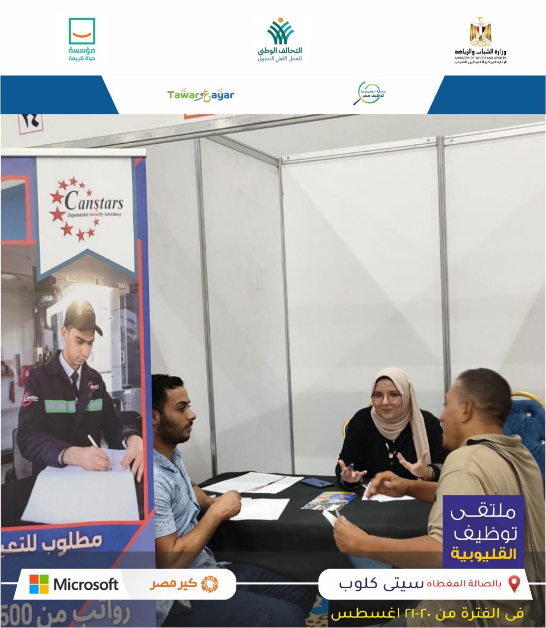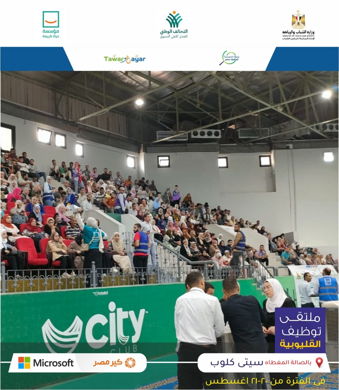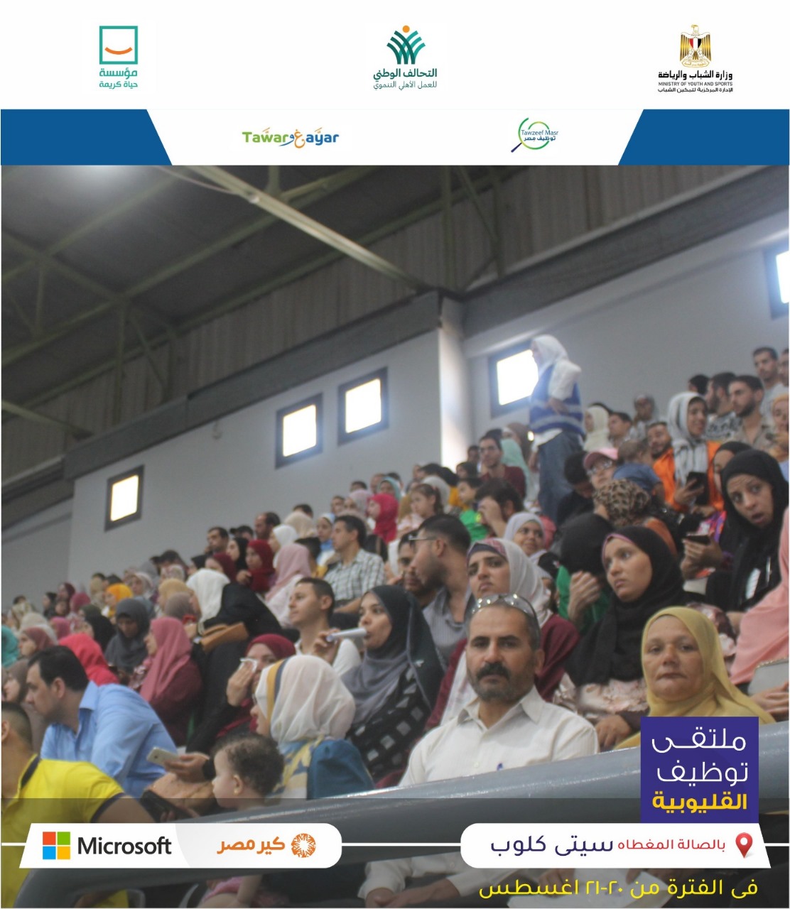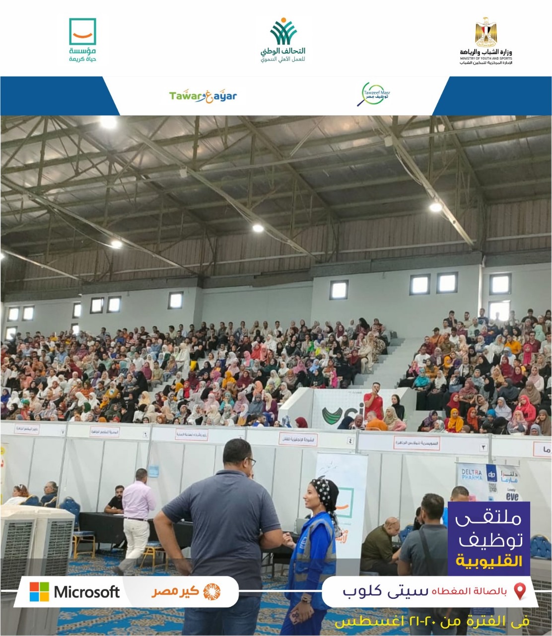 نفذت وزارة الشباب والرياضة من خلال الإدارة المركزية لتمكين الشباب (الإدارة العامة للمبادرات الشبابية)، ومؤسسة حياة كريمة ملتقيات "توظيف مصر " بالدقهلية والقليوبية من خلال مبادرة "توظيف مصر "، بالتعاون مع مؤسسة كير مصر وشركة مايكروسوفت، ضمن فعاليات صيف شبابنا لتأهيل الشباب لسوق العمل، والتشبيك مع الوظائف من خلال منصة توظيف مصر، بمشاركة قرابة ٨ الالف شاب وفتاة.