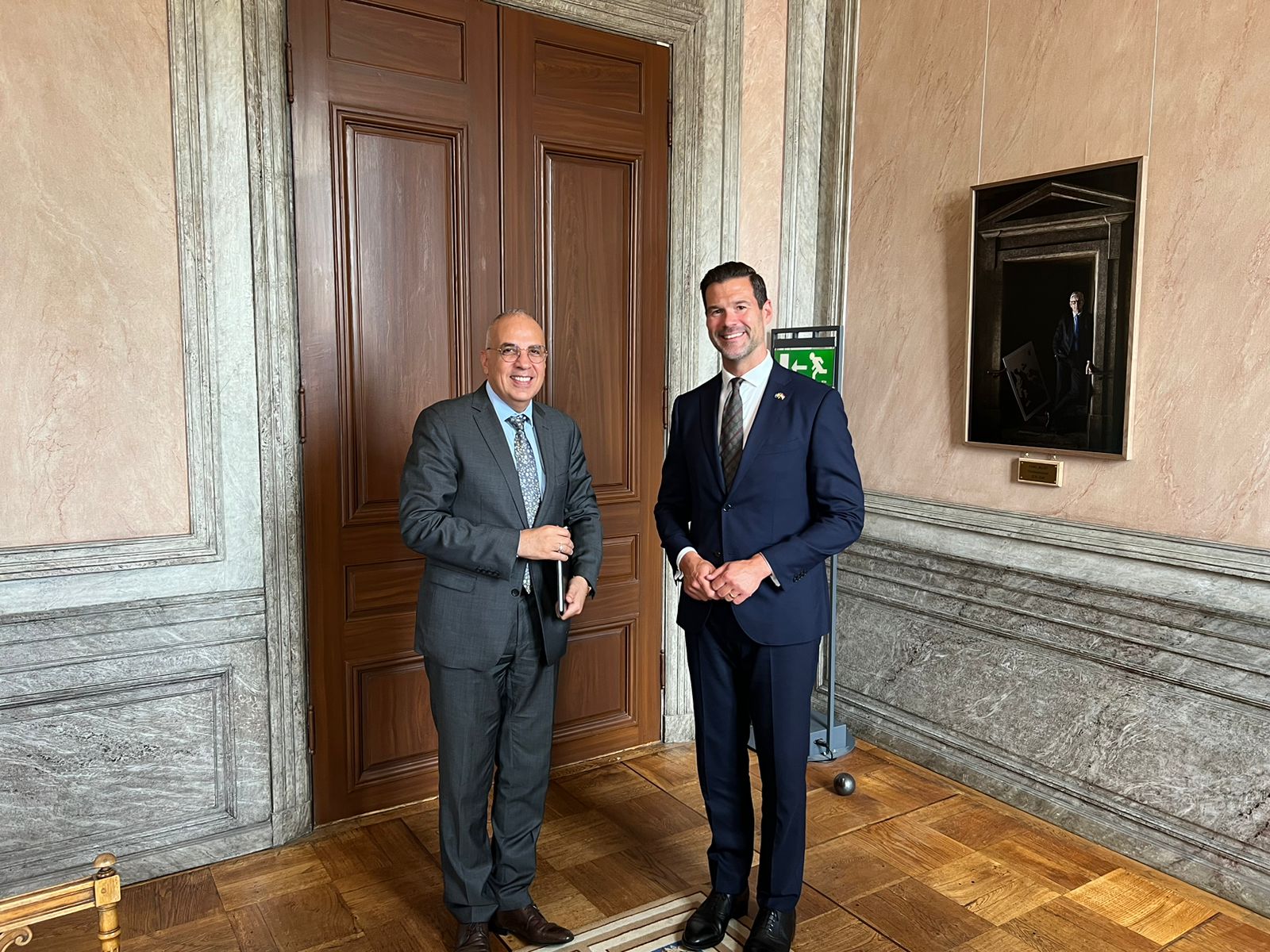 على هامش مشاركته فى الإسبوع العالمى للمياه فى ستكهولم، التقى الدكتور هانى سويلم وزير الموارد المائية والري، جون فورسيل وزير التعاون الانمائى السويدى .