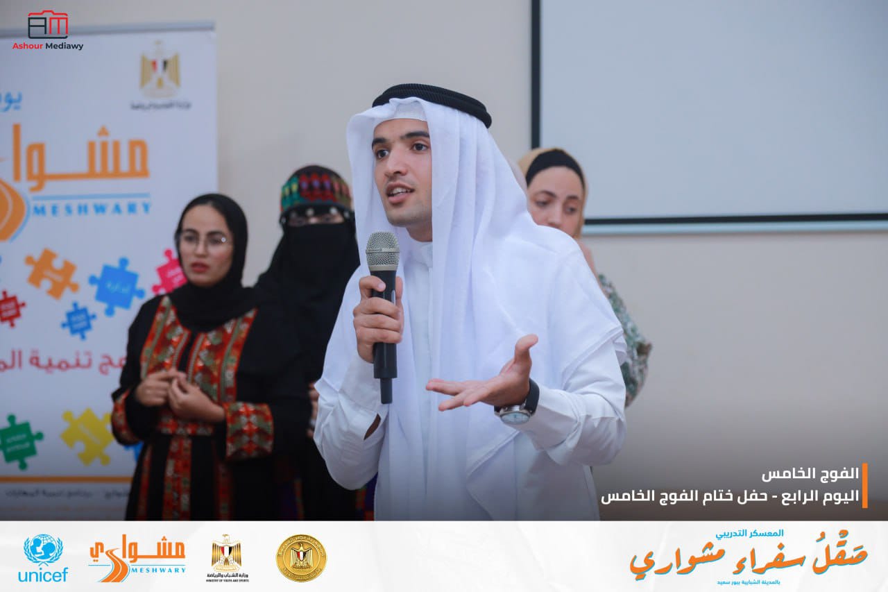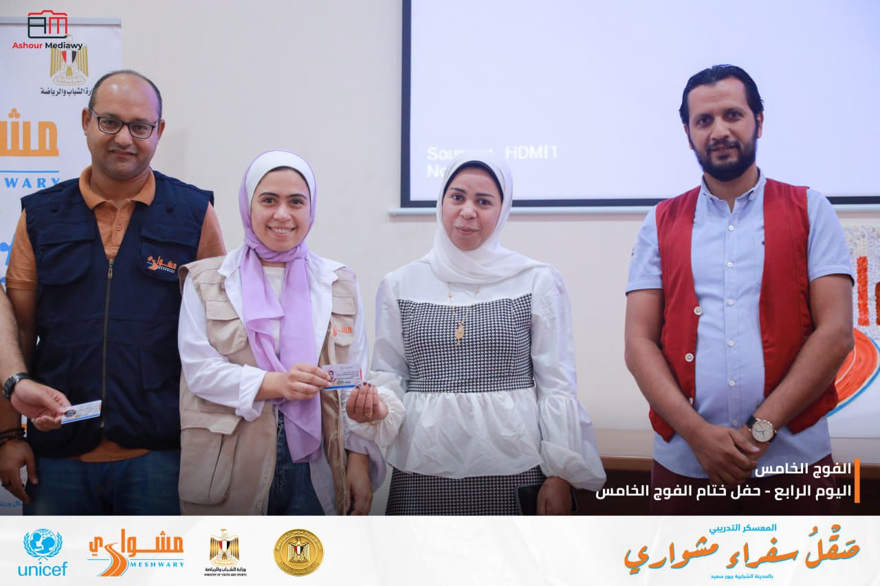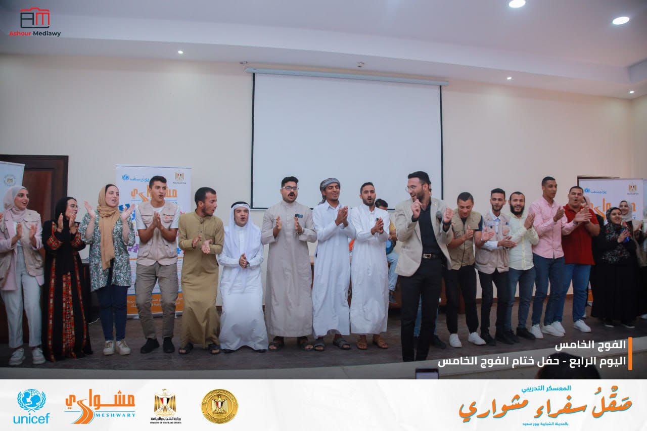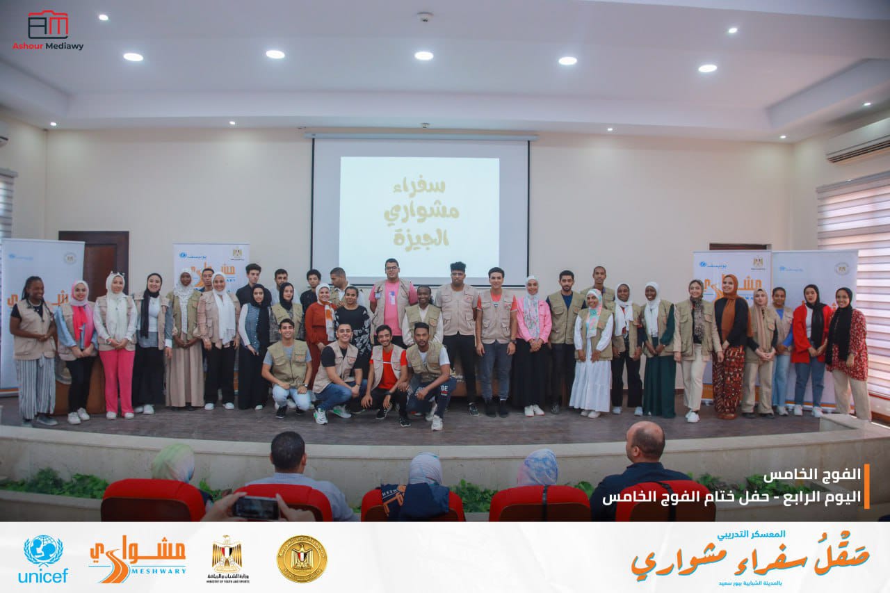 اختتمت وزارة الشباب والرياضة من خلال الإدارة المركزيه لتمكين الشباب (الادارة العامة لريادة الأعمال والمشروعات الناشئة) فعاليات الفوج الخامس من المعسكر التدريبي لصقل سفراء برنامج مشواري، والذي تنفذه الوزارة بالتعاون مع منظمة اليونسيف، بحضور سفراء برنامج مشواري، من محافظات "الجيزة، الشرقية، شمال سيناء "، خلال الفترة من ( ١٧- ٢١) أغسطس الجاري، بالمدينة الشبابيةببورسعيد.
