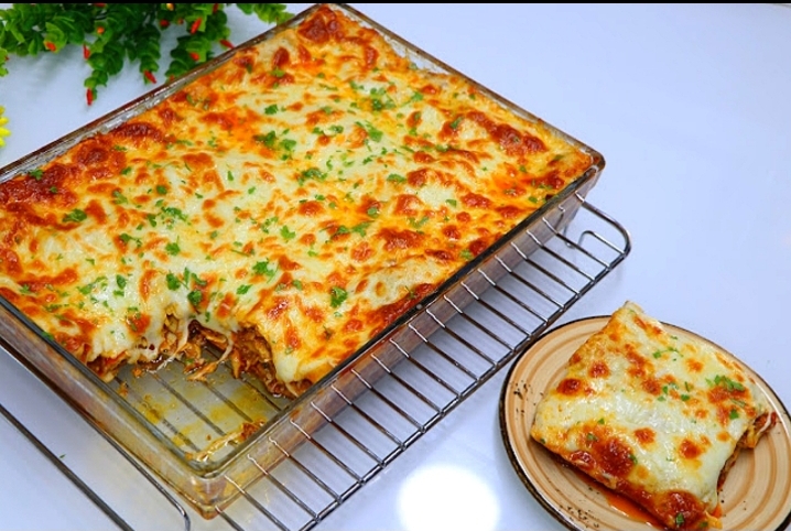 أدخلي الطبق إلى الفرن لحوالي 20-25 دقيقة، ثم حمّري الوجه وقدمي اللازانيا ساخنة.