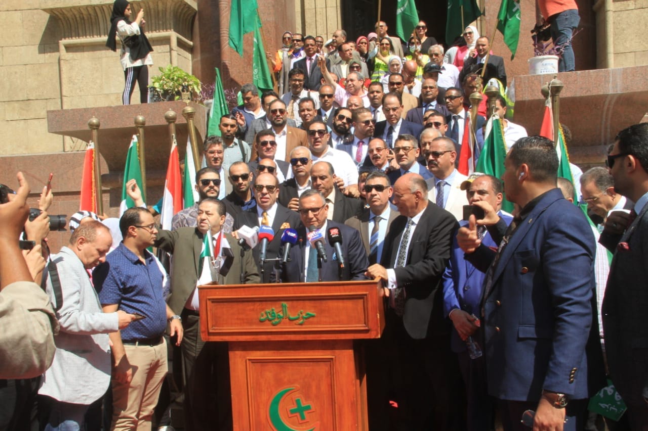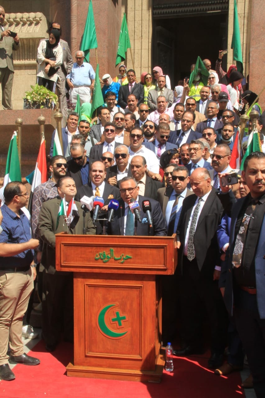 وردد أعضاء حزب الوفد هتافات "عاش الوفد ضمير الأمة، وفديين وفديين من النحاس ليوم الدين، ادي الوفد وادى رجاله تعيد أمجاده، سند سند يحيا سند".