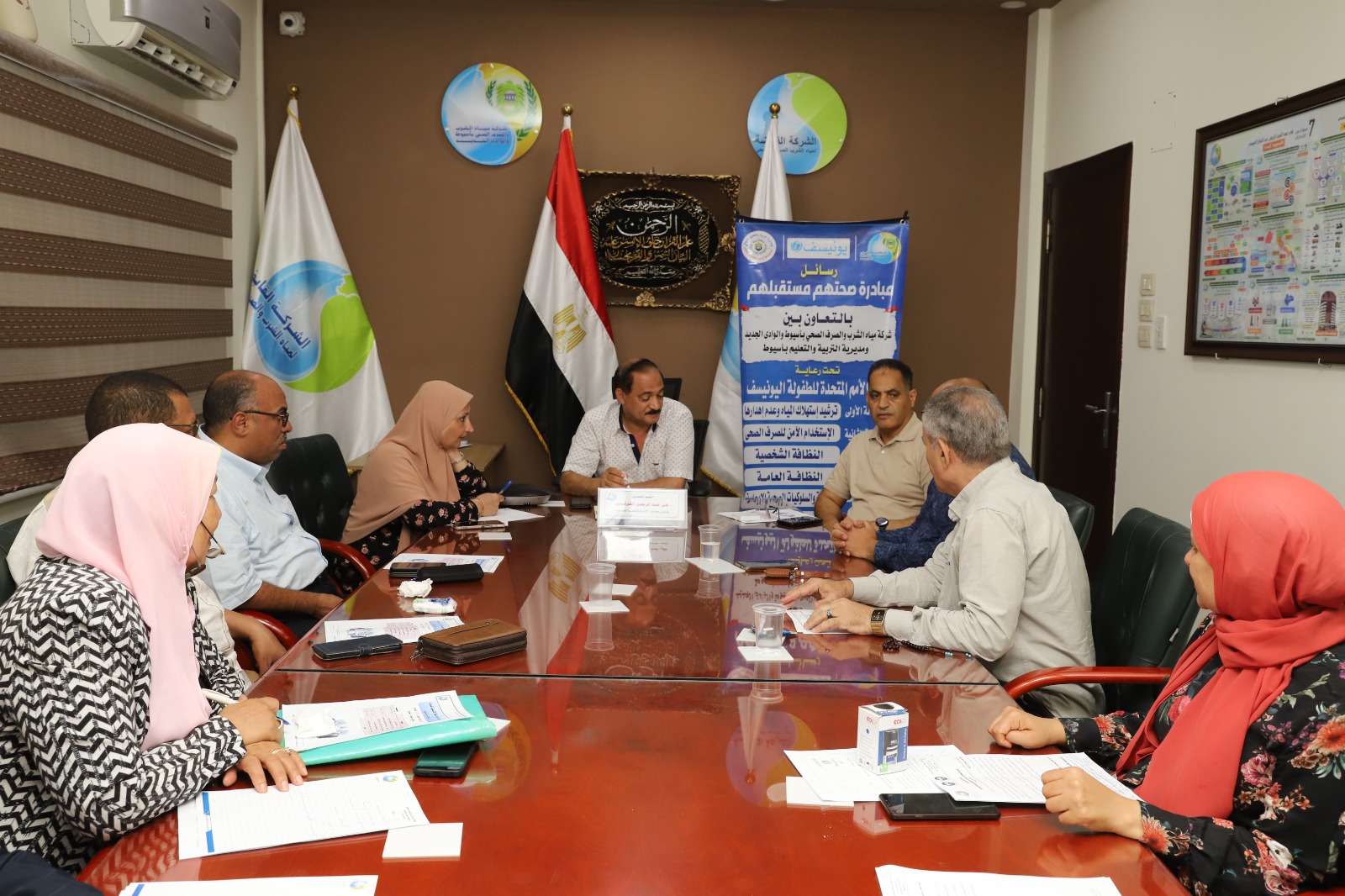 استقبل المهندس على الشرقاوى رئيس مجلس الإدارة والعضو المنتدب للشركة السيد عبد العزيز زنار وكيل وزارة التربية والتعليم بأسيوط وعدد من مسئولى التربية والتعليم بالمحافظة، والسيد ريمون شكرى مسئول ميداني بمنظمة الأمم المتحدة للطفولة والأمومة (اليونيسف)، وبحضور أعضاء فريق التوعوى والمشاركة المجتمعية بالشركة حيث تم إطلاق المبادرة الجديدة صحتنا في بيئتنا في مركز ابنوب ومركز ساحل سليم ومركز اسيوط وذلك بمشاركة 150 مدرسة جديدة ونشر الوعي بهم حيث ضع الاجتماع الخطة المستقبلية لتحقيق الانتشار والتوسع بأقصى استفادة ممكنة لجميع الطلاب على مستوى المحافظة ونشر الرسائل التوعوية من خلال تنفيذ أنشطة طلابية مختلفة .