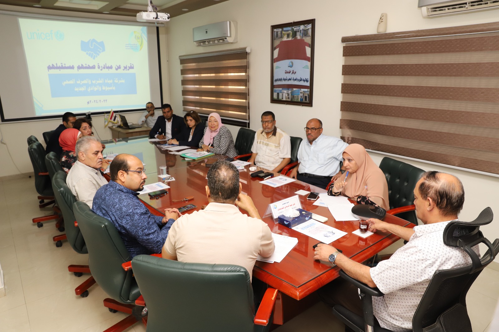 عقدت شركة مياه الشرب والصرف الصحي بأسيوط والوادى الجديد اجتماعا لمناقشة ما تم تنفيذه من أنشطة توعوية بمبادرة "صحتنا في بيئتنا" تعزيزا للدور الاجتماعي المشارك في رفع الوعي الثقافي للفكر المائي من خلال توعوية لطلاب المدارس بعدد 150 مدرسة تحت شعار "صحتنا في بيئتنا" بالشراكة مع منظمة الأمم المتحدة للطفولة والأمومة (اليونيسف).