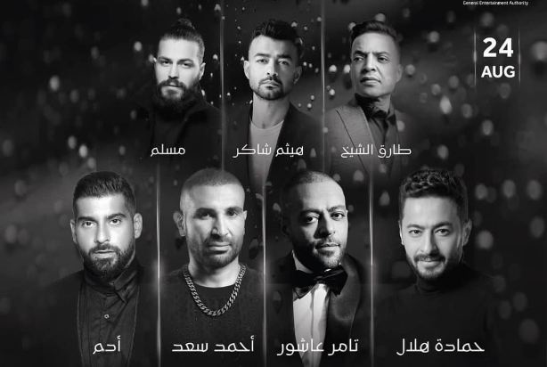 يستعد النجوم تامر عاشور، أحمد سعد، آدم، حمادة هلال، هيثم شاكر، مسلم وطارق الشيخ، لإحياء حفل غنائي كبير بعنوان “ليلة الدموع”، اليوم 24 أغسطس على خشبة مسرح بنش مارك في جدة بالمملكة العربية السعودية.