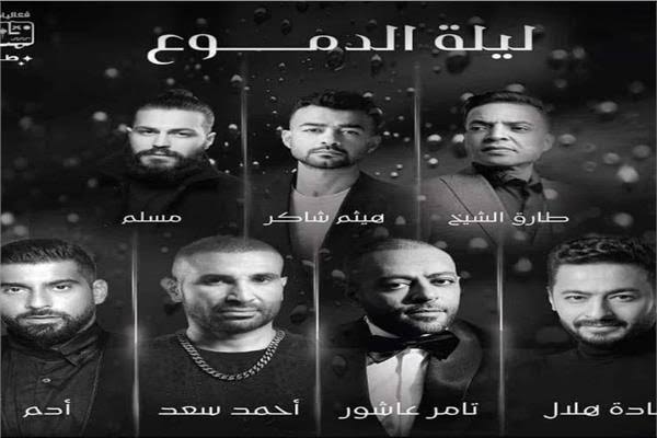 يجتمع النجوم تامر عاشور، أحمد سعد، حمادة هلال، هيثم شاكر، طارق الشيخ، آدم، أحمد كامل، مسلم في حفل غنائي استثنائي تحت عنوان "ليلة الدموع"، مساء اليوم الخميس، بمدينة جدة بالمملكة العربية السعودية، وقدم مطربين "اللون الحزايني" مجموعة من الأغاني المأسوية، ورغم ذلك تحمس الجمهور السعودي لحضور ليلة تقليب المواجع ومراجعة الحسابات العاطفية، إذ نفذت التذاكر بمجرد الإعلان عنها وطرحها على مواقع ومنافذ البيع.