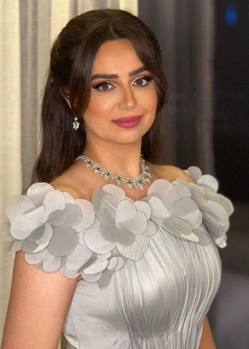 أما من الناحية الجمالية، اختار مصفف الشعر Haytham Amin تسريحة شعر راقية له ووضعت مكياجًا جذابًا مرتكزًا على الالوان الترابية مع تحديد عينيها بالكحل والماسكرا السوداء ولون البينك في الشفاه لتبدو ملامحها على طبيعتها.