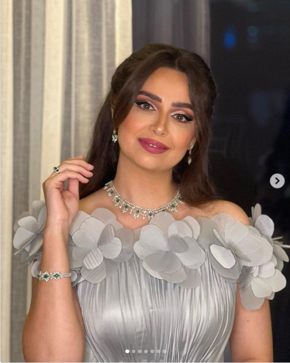 وأكملت فخامة إطلالتها بعقد الألماس المزين بأحجار الزمرد الفخم.