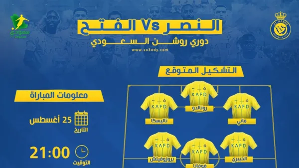 | لمشاهدة مباراة النصر والفتح في الدوري السعودي اضغط هنا |