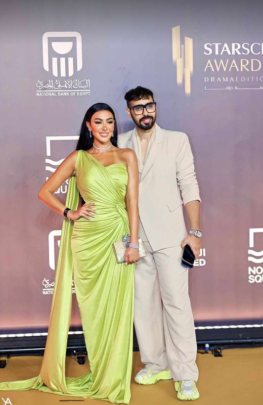 أما من الناحية الجمالية، اعتمدت تسريحة شعر جذابة تناغمت مع إطلالتها ووضعت مكياجًا جذابًا مرتكزًا على الألوان الترابية مع تحديد عينيها بالكحل والماسكرا السوداء ولون النود اللامع في الشفاه.