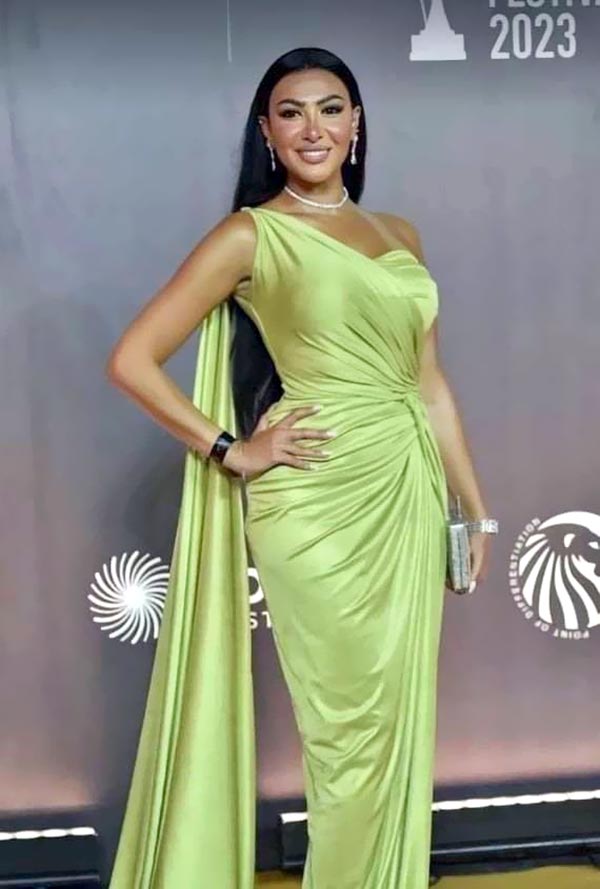 وكشف مصمم الأزياء أحمد عبدالله تفاصيل تصميمه لفستان ميرهان حسين الذي استغرق 48 لتنفيذه، وصمم من قماش الحرير الليكرا بلون الأخضر الليموني ليواكب موضة صيف وخريف 2023.