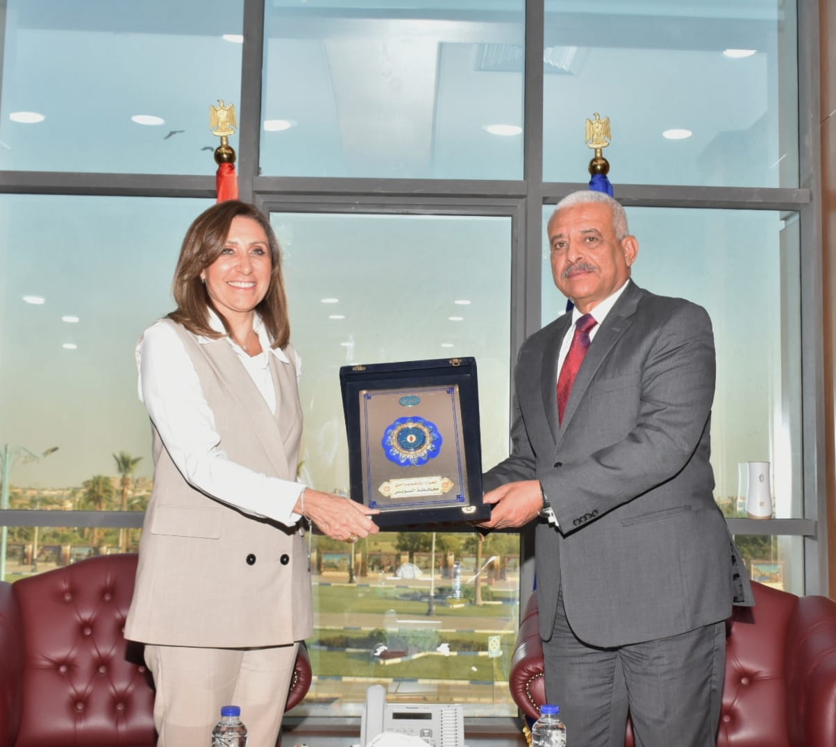 دروع تذكارية.. وزيرة الثقافة تلتقي محافظ السويس لبحث سبل التعاون