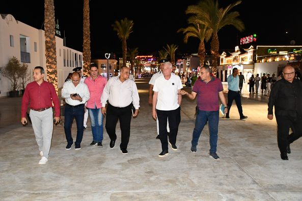 جولة ليلية لمحافظ جنوب سيناء بمنطقة خليج نعمة والهضبة بشرم الشيخ