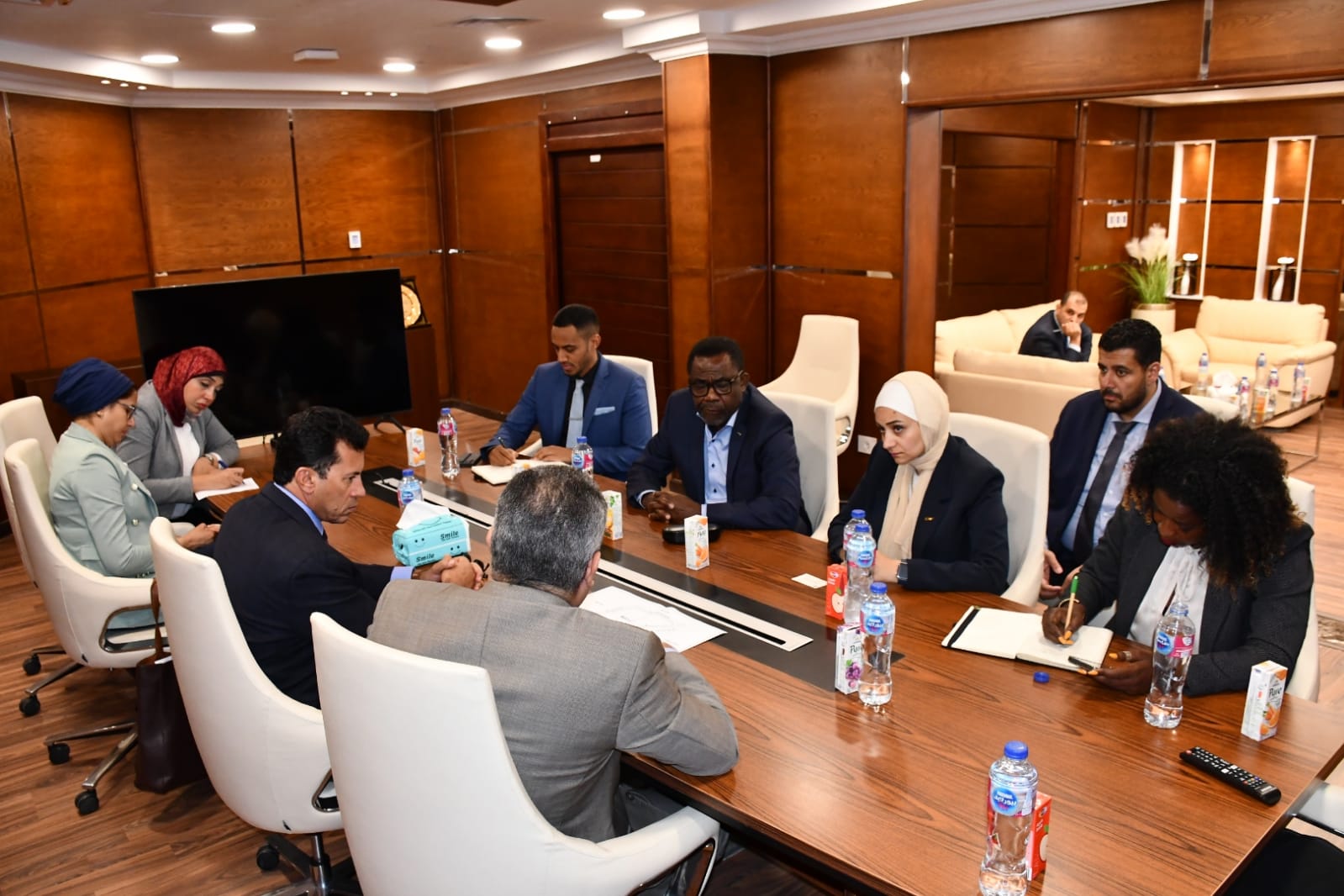 جاء ذلك خلال لقاء وزير الشباب والرياضة، اليوم الإثنين، بالمدينة الرياضية بالعاصمة الإدارية، فيرون موسينجو، السكرتير العام للاتحاد الأفريقي لكرة القدم "الكاف"؛ للحديث حول عدد من الملفات، وبحث انشاء مقر جديد للاتحاد الأفريقي لكرة القدم "الكاف" بالعاصمة الإدارية الجديدة، بحضور المهندس خالد عباس، رئيس مجلس ادارة شركة العاصمة الادارية.