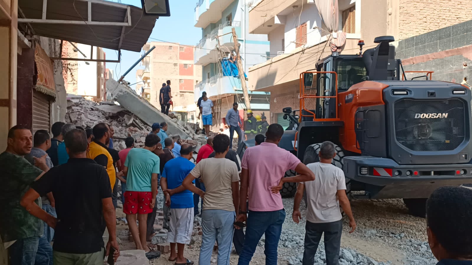 أكدت المعاينة بمعرفة وفد النيابة الإدارية بمحافظة الإسماعيلية،  انهيار العقار المكون من أرضي وثلاث طوابق بالكامل، بداخله ٥ أشخاص بينهم طفل.