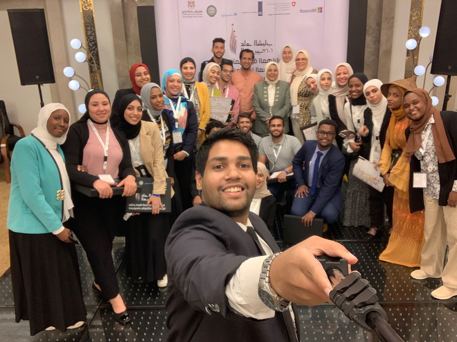 حضر حفل الختام منال جمال وكيل الوزارة رئيس الإدارة المركزية لتمكين الشباب، والدكتور عبدالله الباطش مساعد الوزير للسياسات والتنمية الشبابية، هاري مورجان من شركة ميكروسوفت.