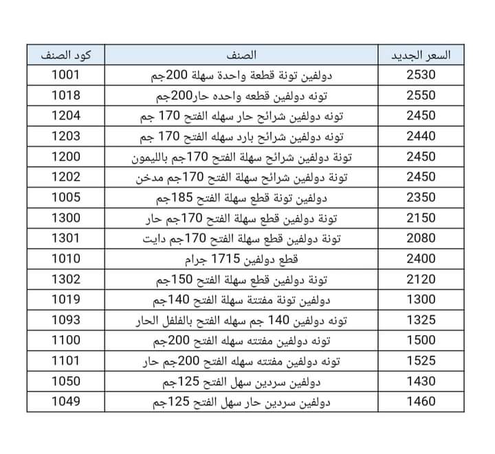أسعار تونة دولفين بعد الزيادة: