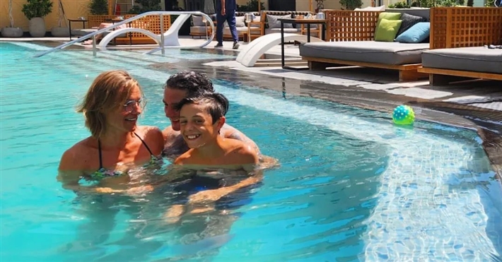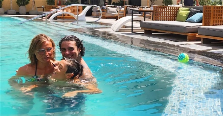 أحمد الفيشاوي للمرة الأولى، مع ابنه داخل حمام السباحة: