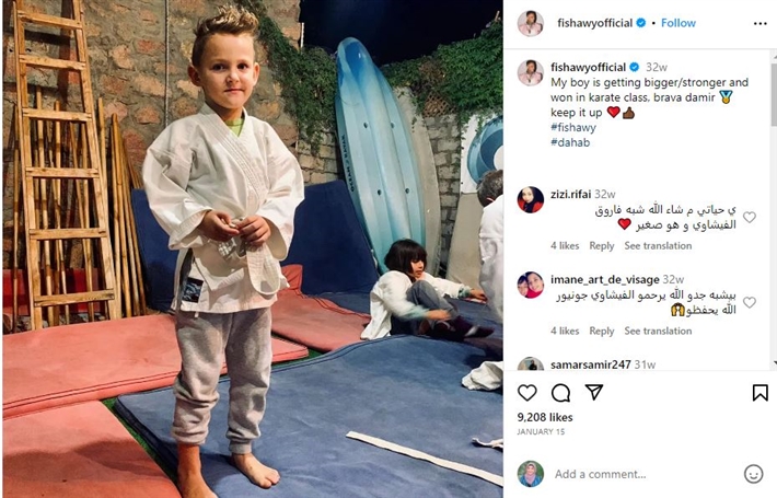 وفي يناير 2023، نشر الفيشاوي صورة لابنه من تدريب الكاراتيه، وعلق كاتبًا: "ابني أصبح كبيرًا وقويًا، وحقق فوزًا في رياضة الكاراتيه.. استمر في التقدّم لتنطلق".