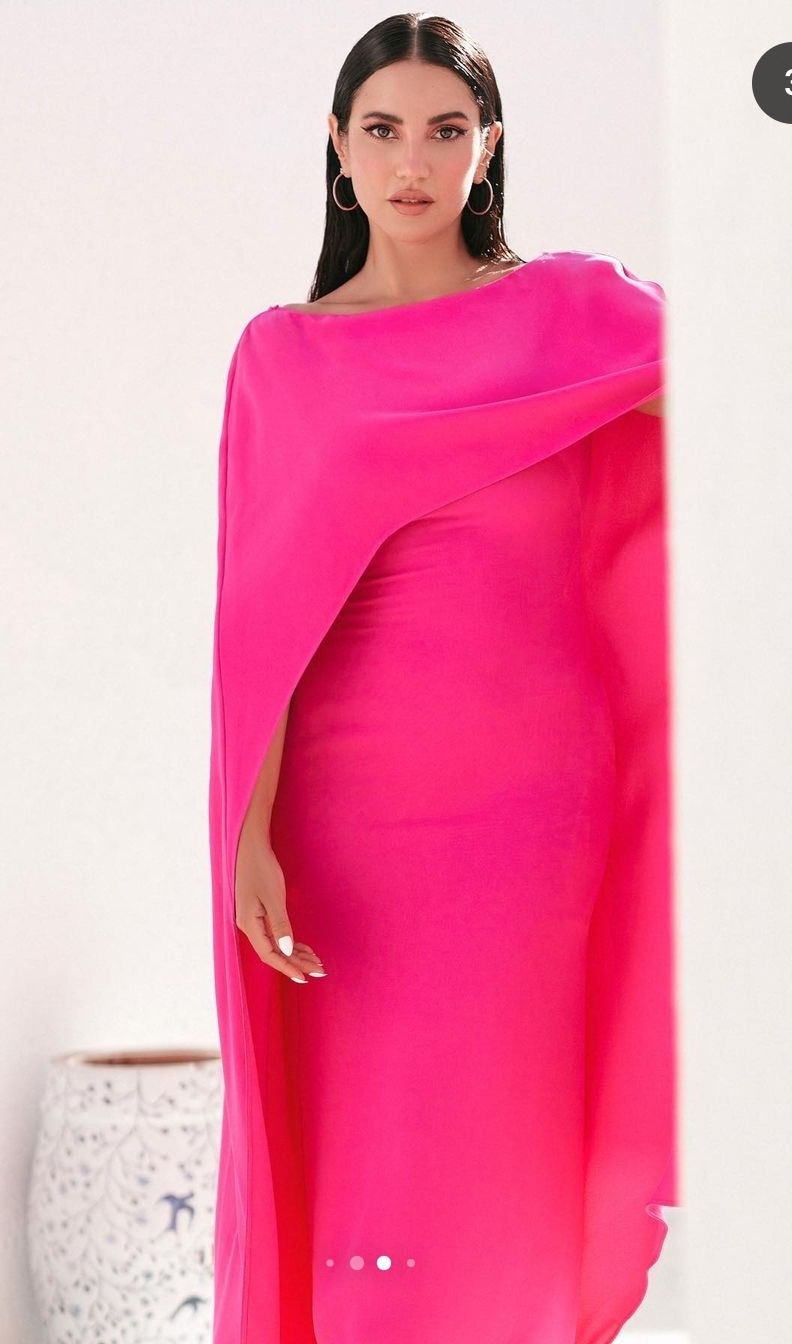 وتألقت درة بإطلالة ساحرة، تشبه عارضات الأزياء، حيث ارتدت فستان طويل مجسم، بأكمام طويلة تشبه استايل الأميرات، مميز بالاحتشام والرقي في آن واحد،  صمم الفستان من قماش واحد باللون البينك الناعم،  هذا ما جعلها محط أهتمام واعجاب متابعيها عبر الانستجرام بمجرد مشاركة متابعيها بعض صورها عبر حسابها الشخصي.