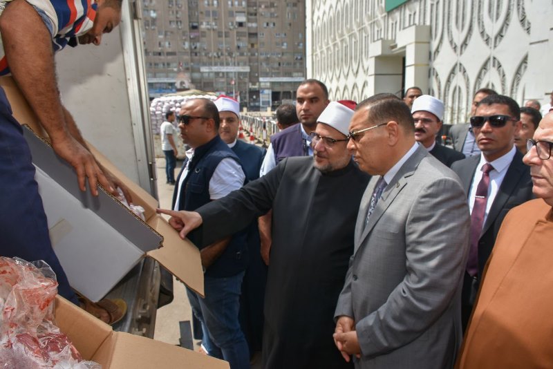 وزير الأوقاف ومحافظ الشرقية يشهدان توزيع 2 طن لحوم صكوك إطعام