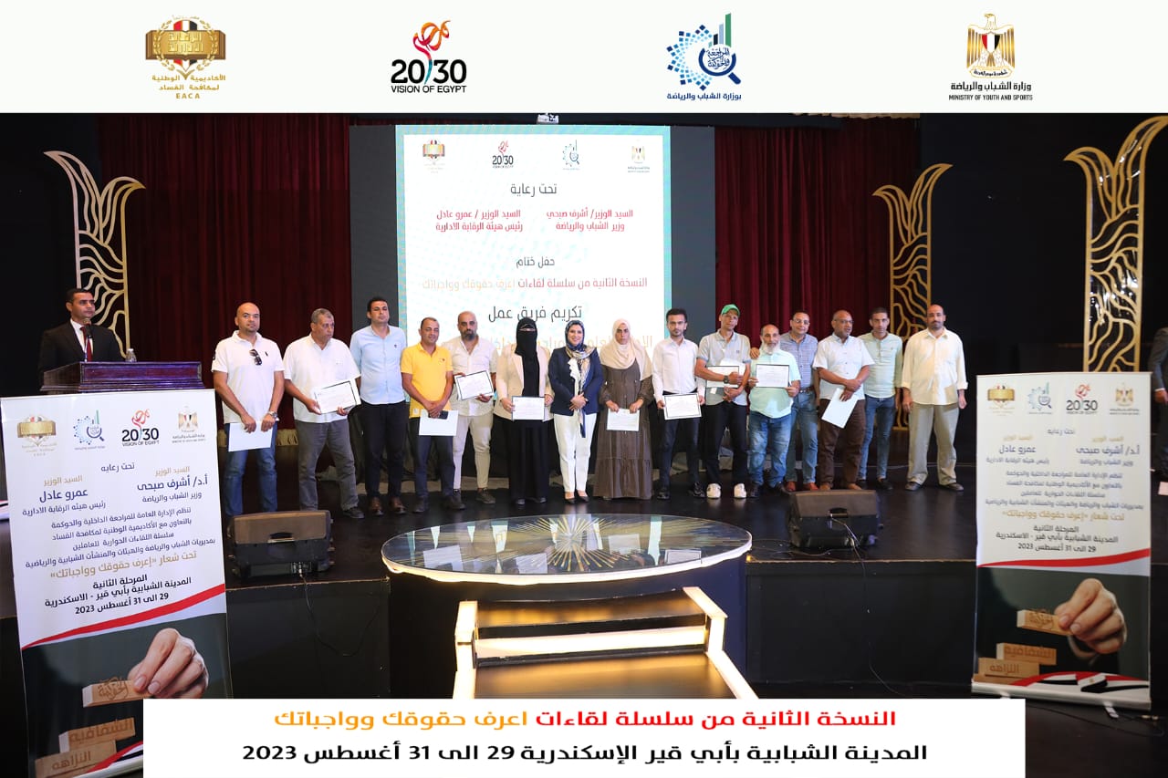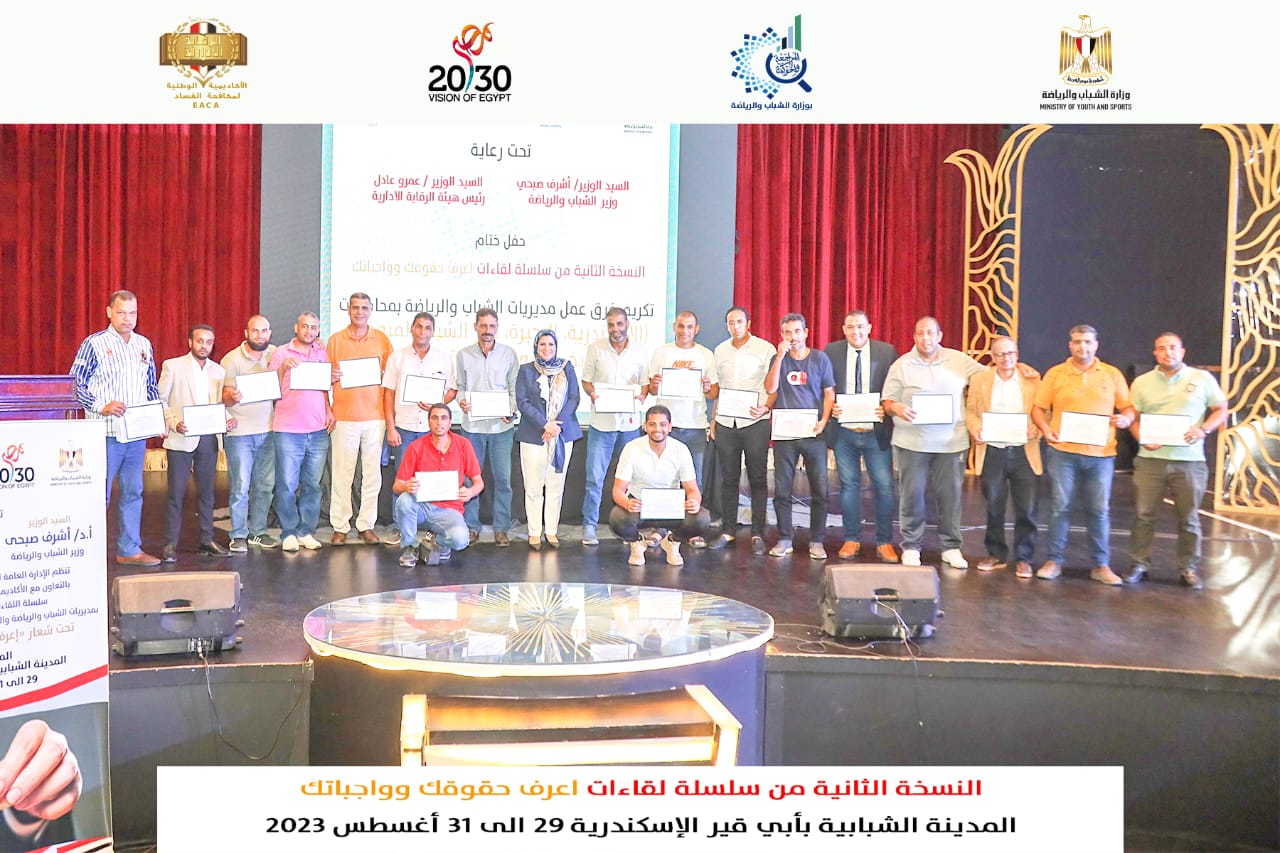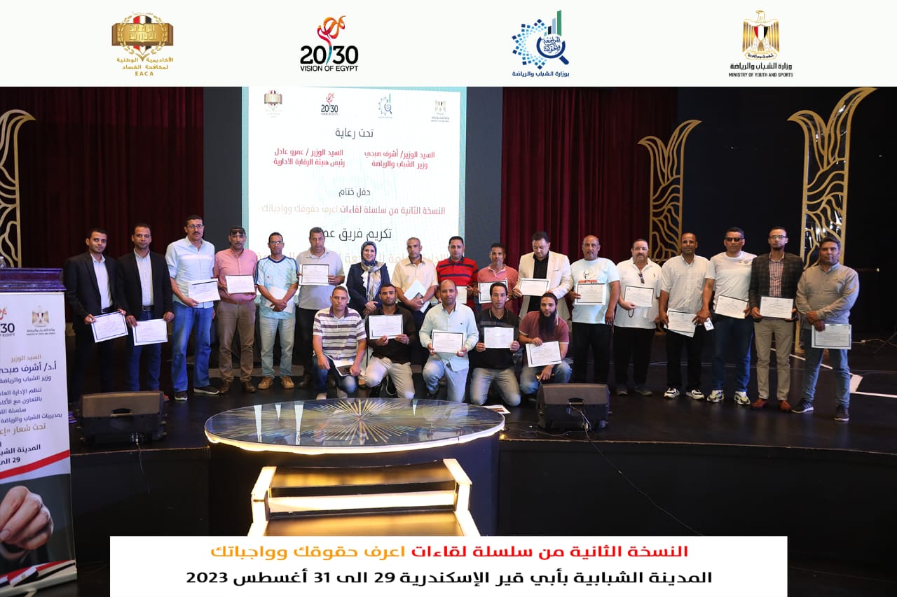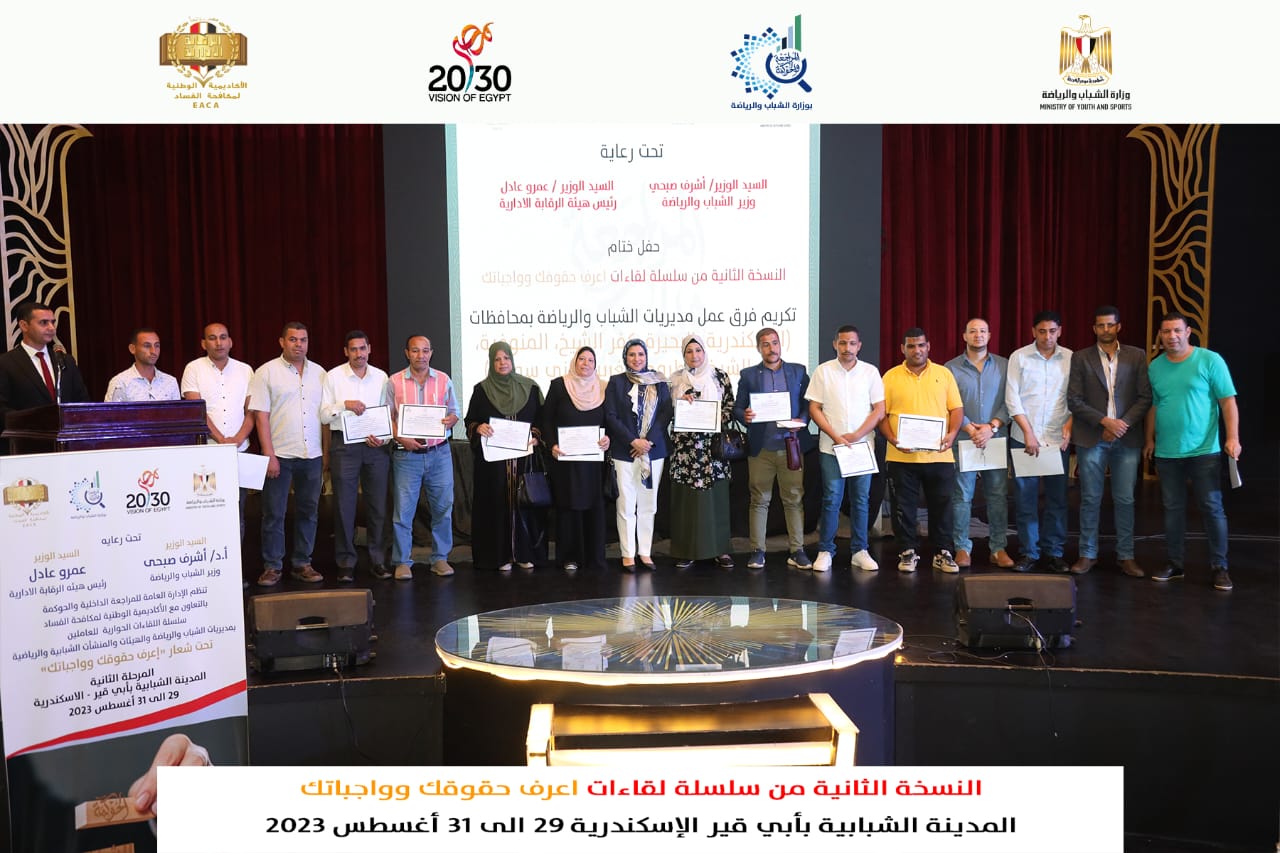 اختتمت وزارة الشباب والرياضة النسخة الثانية من سلسلة لقاءات "اعرف حقوقك وواجباتك" بالمدينة الشبابية في أبي قير، الإسكندرية، تحت رعاية الدكتور أشرف صبحي وزير الشباب والرياضة وعمرو عادل رئيس هيئة الرقابة الإدارية المراجعة الداخلية والحوكمة. تم تنفيذ هذه الفعالية بالتعاون بين وزارة الشباب والرياضة وهيئة الرقابة الإدارية وتستهدف توعية العاملين في مجال المراجعة الداخلية والحوكمة والشؤون المالية وتعزيز مفهوم القانون والمسؤولية ومكافحة الفساد.