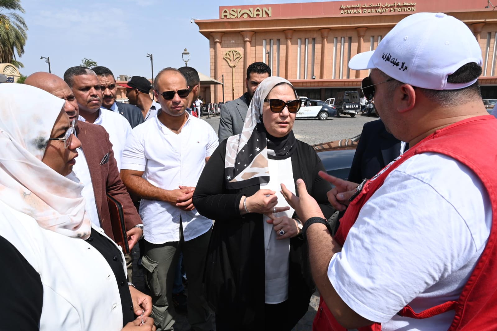 تفقدت الدكتورة نيفين القباج وزيرة التضامن الاجتماعي ونائب رئيس مجلس إدارة الهلال الأحمر المصري نقطة الخدمات الإنسانية للهلال الأحمر المصري أمام محطة أسوان للسكك الحديدية، وذلك خلال الزيارة التي تقوم بها لمحافظة أسوان.